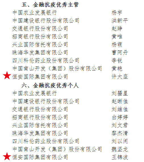 与此同时,在《2020年度结算业务和集中清算业务优秀主管和优秀个人》评选中,东升国际集团资本运营总裁许大座荣获“金融抗疫优秀主管”,资本运营投资总裁助理王锦波荣获“金融抗疫优秀个人”。